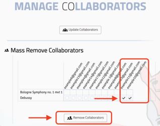 In the above screenshot, example11@gmail.com and example10@gmail.com are no longer using the program, so I have checked them to be removed. This will open up 2 spaces for different collaborators to receive licensing from your account.